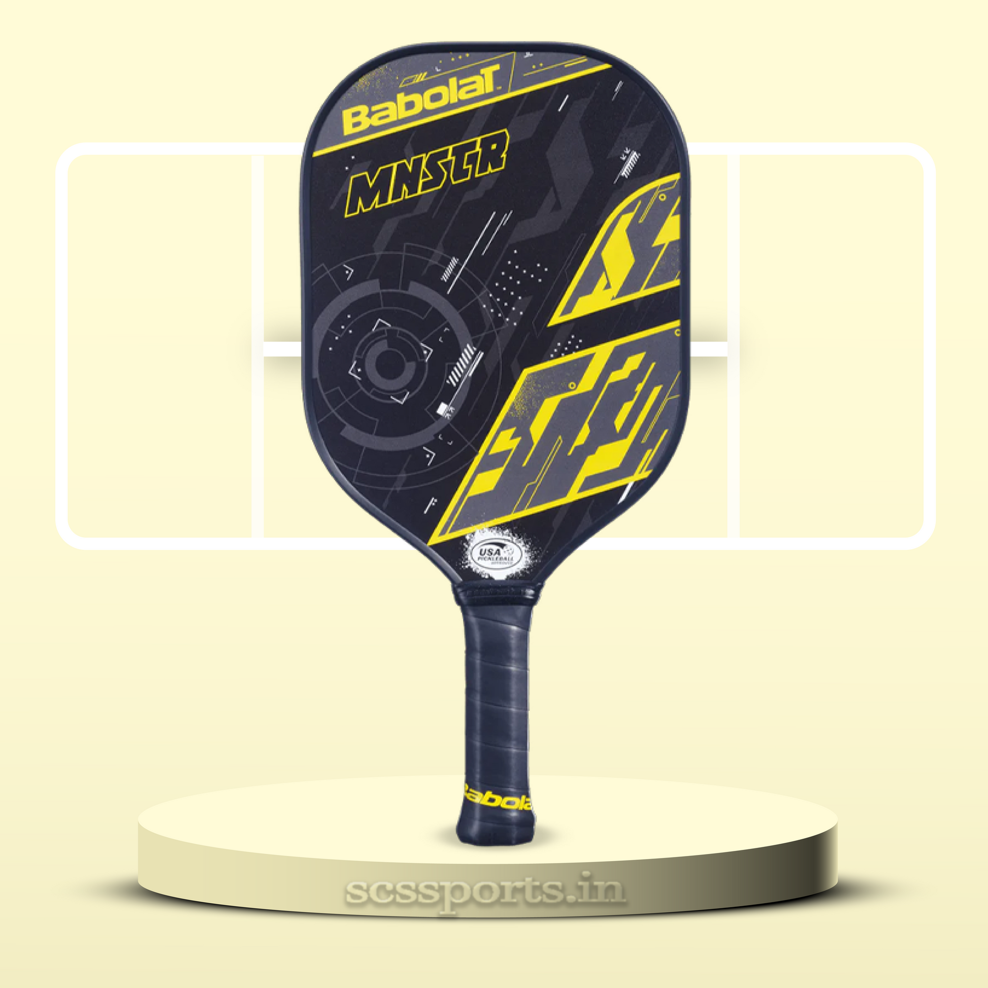 The perfect balance Of Babolat Paddle Mnstr Pickleball Racket. Spin, Power, Control, Feel: a tradition paddle shape, SMAC technology, 15 mm thickness, and an optimized weight make this paddle a versatile performer. Players who want to hit all types of dinks, drives, spins, smashes, serves, returns, and resets will appreciate the consistent and balanced all-around performance.